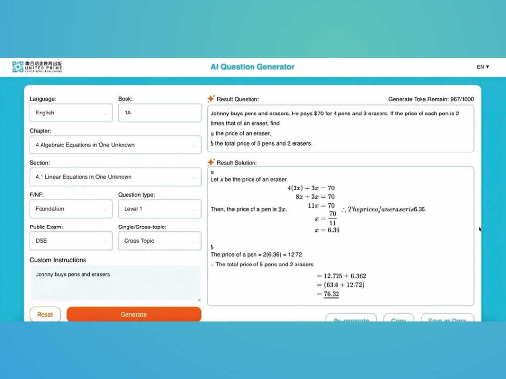 如對最新 AI 教學工具或有任何查詢,歡迎致電營業部詹小姐(電話:2359 1005)或聯絡各區營業代表。