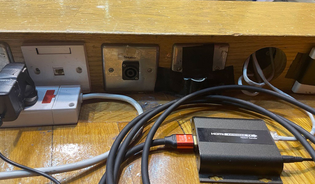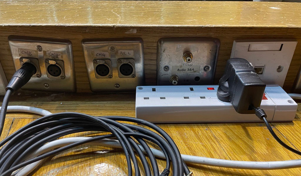培進《朗文音樂》小學校際舊曲新詞(粵語)創作及演繹比賽 2023 場地 基督教家庭服務中心禮堂(九龍觀塘翠屏道 3 號 1 樓) 舞臺 全貌 臺階(共 3 個,每個最多容納 9 人) Ronisch 三角琴 譜架(共 2 個) 咪架(3 個)、咪(6 支) 位於臺上的音源插座