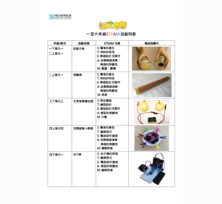 ⼀⾄六年級 STEAM 活動列表