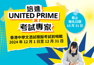 培進 United Prime 擁有多年的出版經驗,並熟悉高中課程及 DSE 考試,曾推出多套暢銷應試練習及中學文憑考試模擬試卷,所編寫的 DSE 模擬試卷中的題型亦緊貼文憑試趨勢,試後會提供精闢獨到的解卷影片如學生及詳盡仔細的評估報告,能夠預測文憑試得分評級。